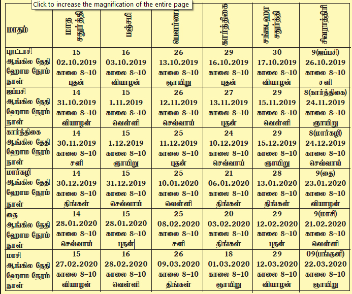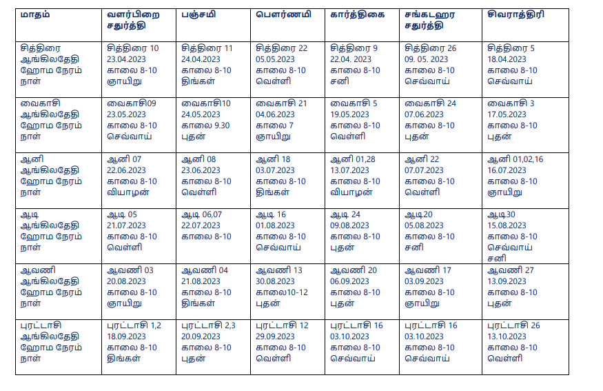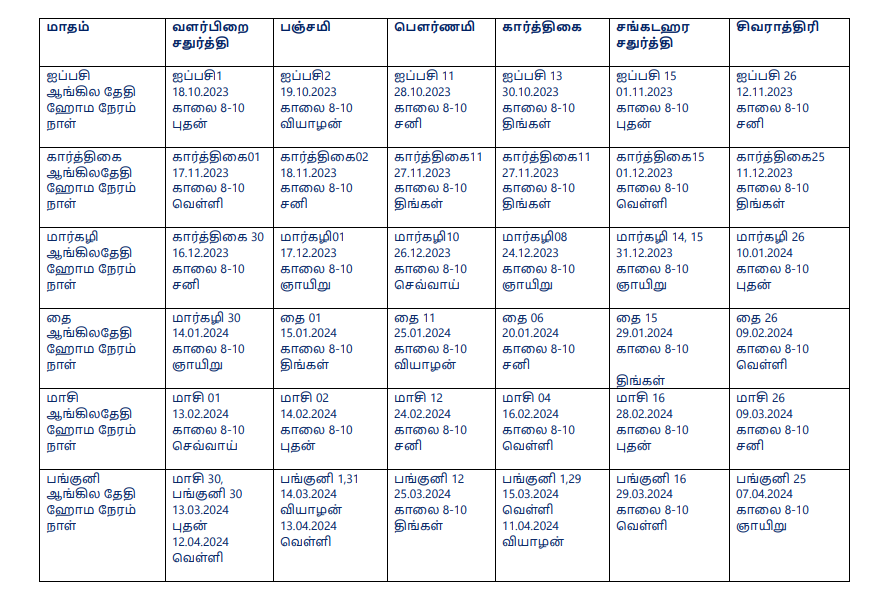 ஸ்ரீ சுபகிருது வருடம் 2023-2024 ஹோம நாட்கள்